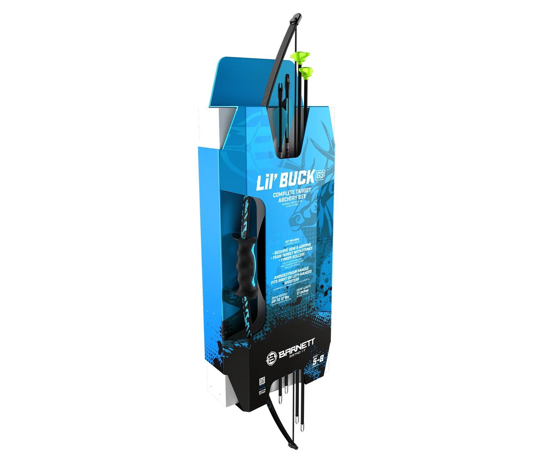 El Barnett Lil' Buck Recurve Combo es un arco recurvo juvenil pensado como primer arco para iniciarse en la arquería. Su diseño ligero, maniobrable y de bajas exigencias físicas lo hace ideal para niños pequeños (aproximadamente de 5 a 8 años), o para quienes dan sus primeros pasos en el tiro con arco.
