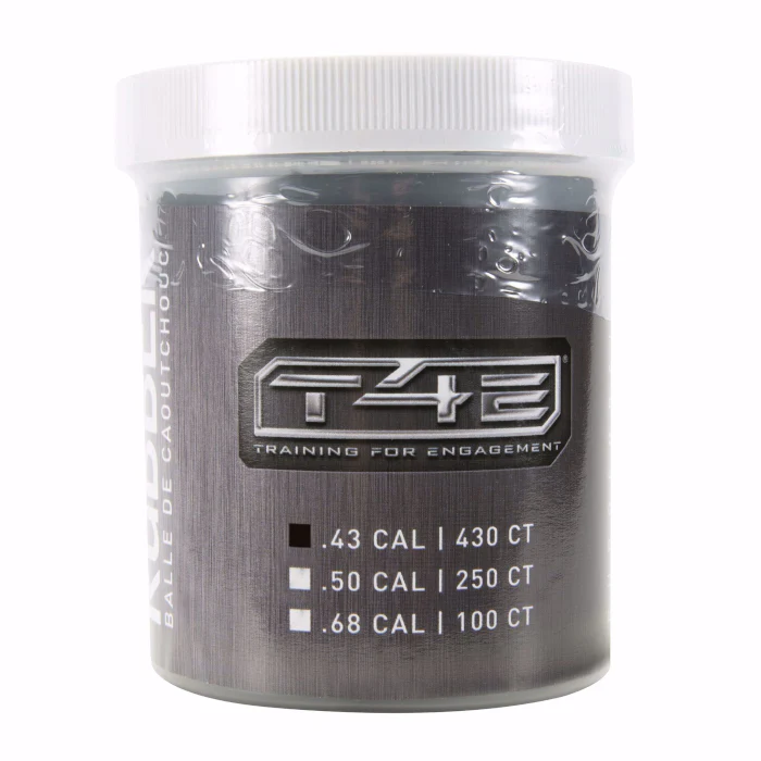 La bolita de caucho T4E calibre .43 color negro (modelo 430) está diseñada para usarse en marcadoras y dispositivos T4E (.43). Fabricada en caucho de alta resistencia, ofrece un impacto contundente y confiable, ideal para entrenamiento táctico, control de disturbios simulado y defensa personal no letal, manteniendo un alto nivel de seguridad cuando se utiliza correctamente.