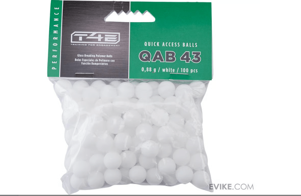 Las bolitas Quick Acces T4E calibre .43 están diseñadas para entrenamiento seguro y simulación recreativa, dejando marcas visibles blancas que facilitan la evaluación de puntería y precisión. Son compatibles con marcadoras T4E calibre .43, ofreciendo un desempeño confiable y consistente en cada disparo.