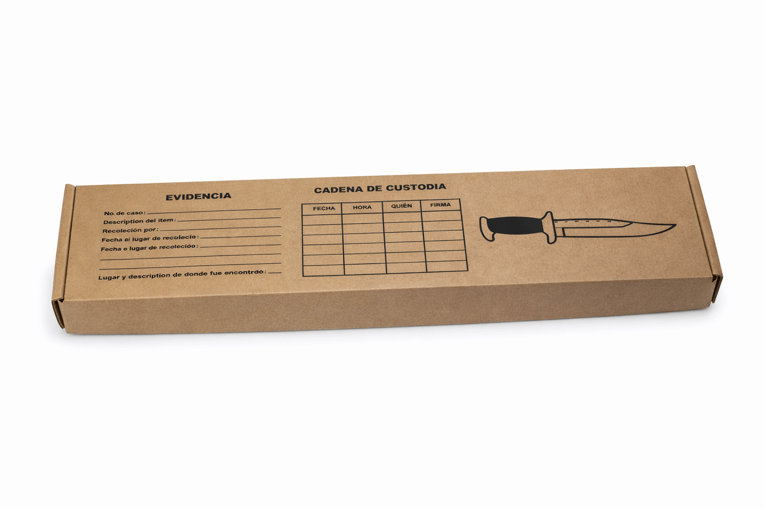 Escoje Tu VariaciónCaja para arma blanca Procrimex diseñada para el resguardo, traslado y presentación de indicios cortantes o punzocortantes en contexto forense. Fabricada para minimizar la manipulación directa, contener el objeto de forma estable y preservar sus características morfológicas para el análisis posterior. Permite el etiquetado y la identificación del indicio conforme a protocolos básicos de embalaje.