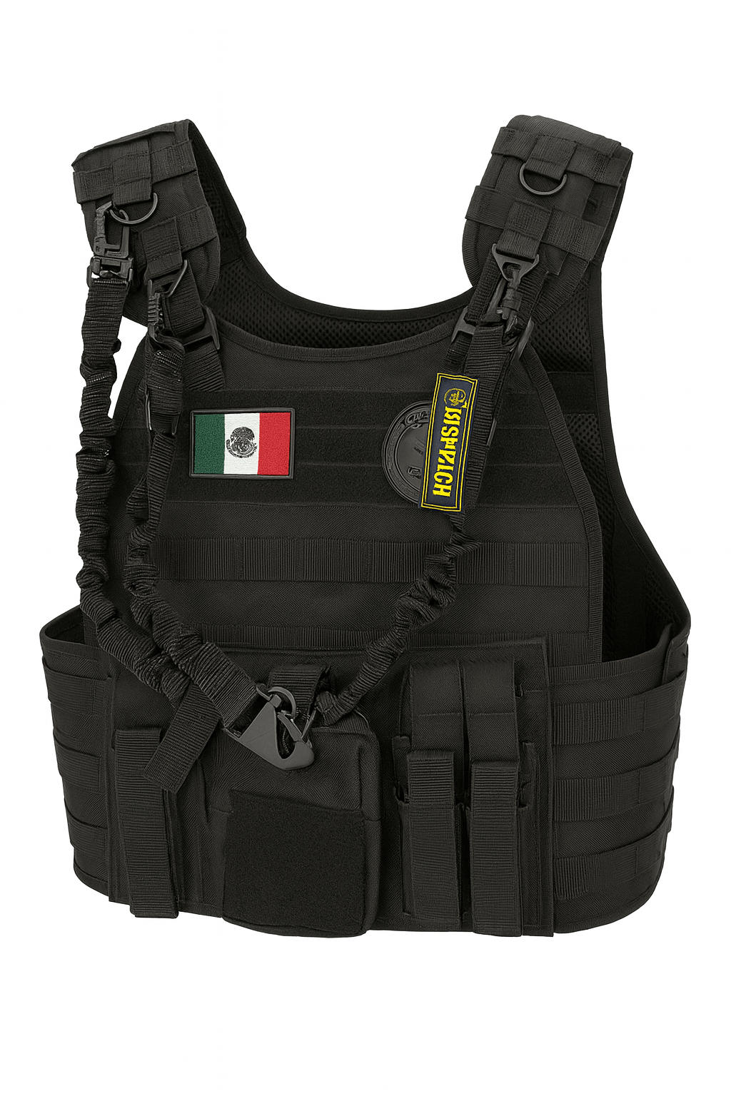 Fabricado con material de alta resistencia, soporta uso rudo y tensión constante. La estructura permite colocar placas de lastre o placas balísticas frontales y traseras, convirtiéndolo en una herramienta versátil tanto para entrenamiento con peso como para simulación táctica.