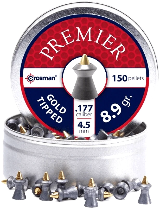 Diabolo Premier Gold Tipped .177 4.5 diseñado para mejorar la precisión en rifles de aire comprimido de 4.5mm.