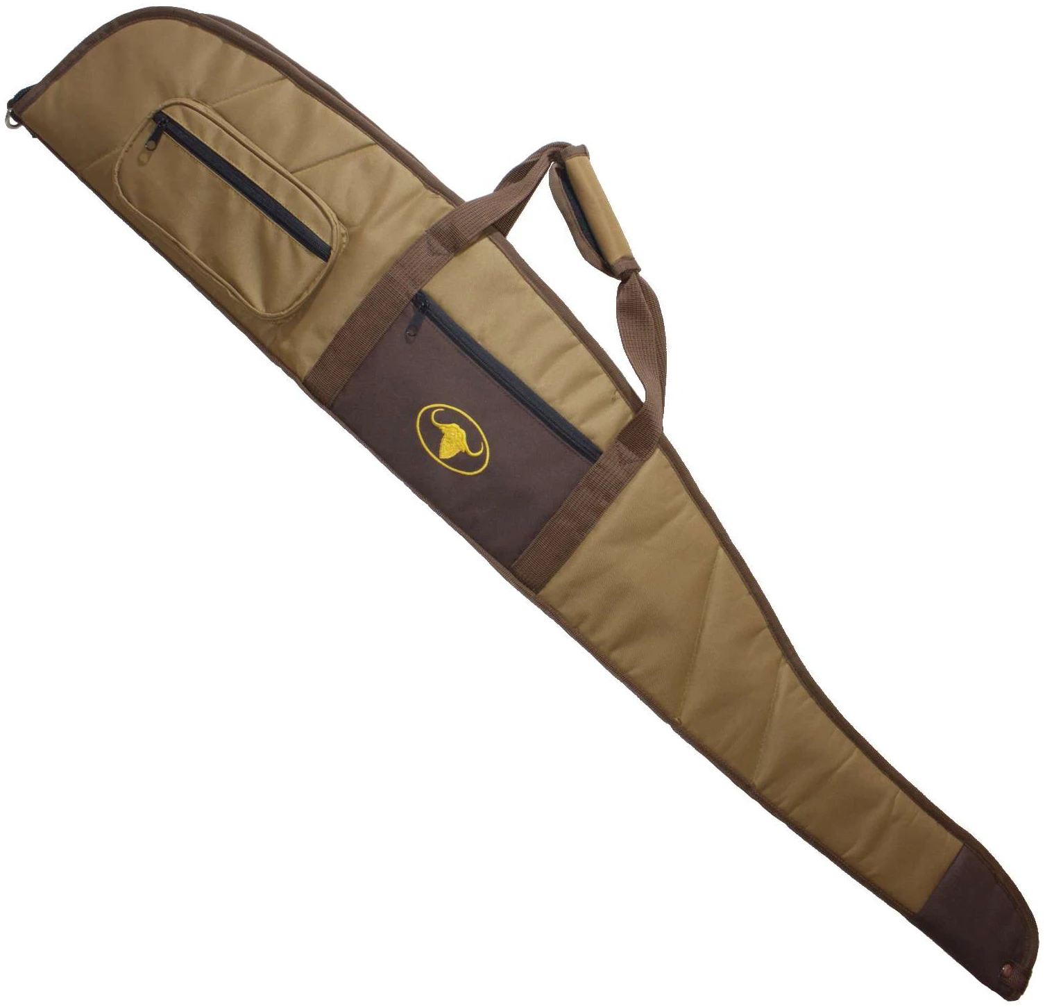 Funda para escopeta Búfalo 52" (132 cm) en color kaki. Exterior resistente, interior acolchado que protege cañón y culata contra golpes y arañazos. Diseño práctico con bolsillo frontal para accesorios, cierre reforzado, asa de mano y correa bandolera acolchada y ajustable para transporte cómodo. Ideal para caza, tiro deportivo y guardado seguro durante traslados