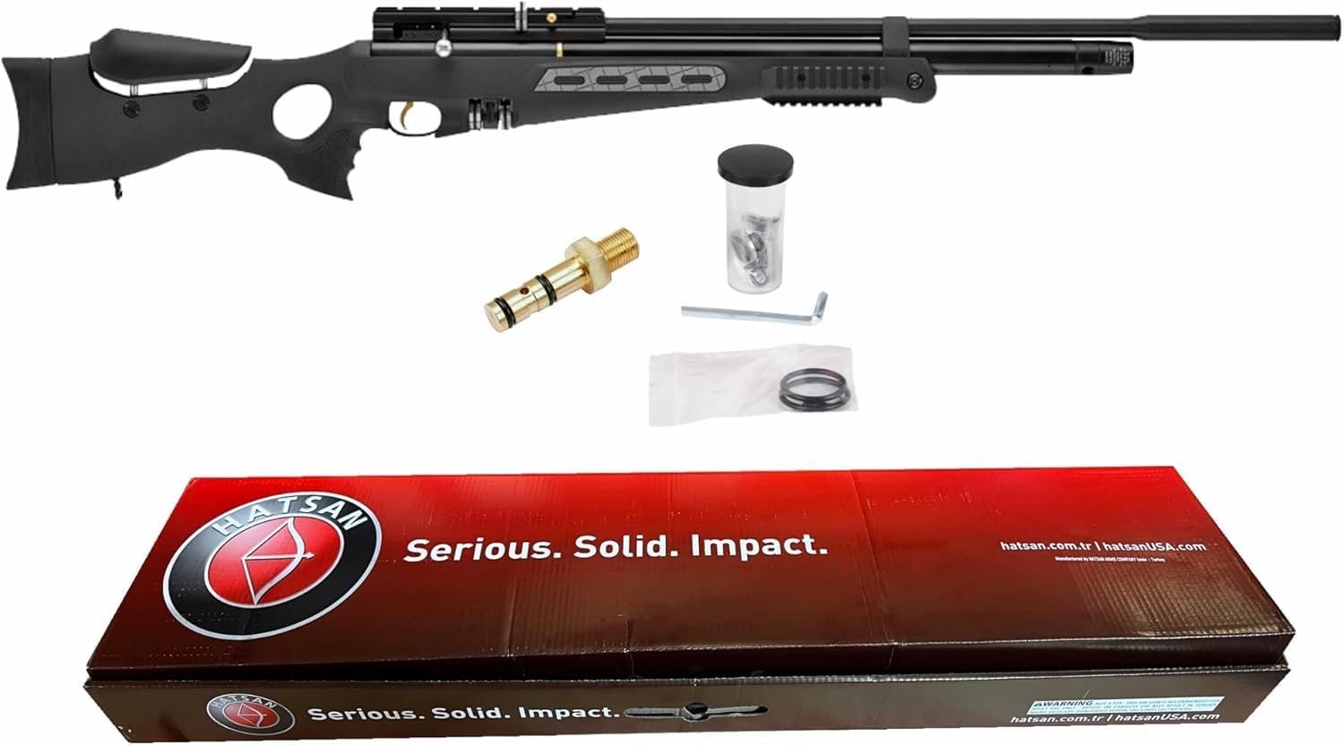 El Hatsan HGBT65SB Quiet Energy es un rifle de aire de acción de perno neumático precargado con 32% de disparos más silenciosos. Esto se logra por el barril completamente envuelto QuietEnergy y moderador de sonido integrado. El cilindro de aire de 255cc tiene un manómetro incorporado y proporcionará suficiente potencia para disparar 18-40 disparos, dependiendo del calibre. Este rifle es una excelente opción para disparos de bajo perfil y control de plagas.