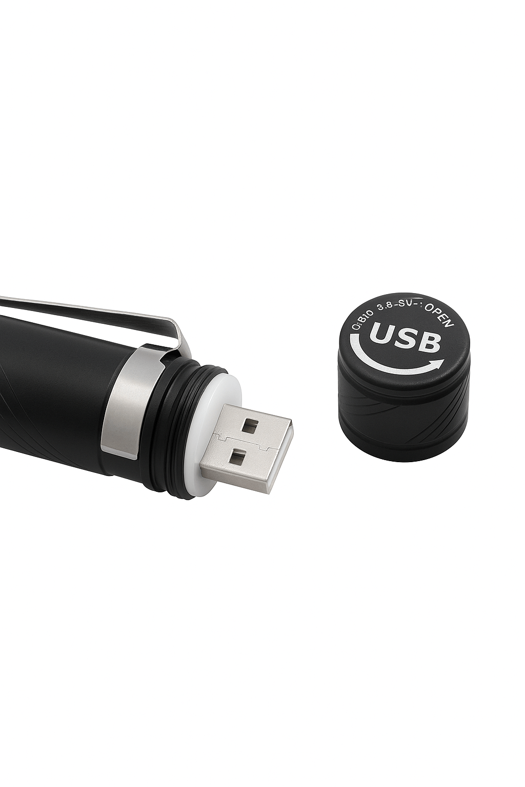 Se adopta un diseño de carga portátil y hay un conector USB al final de la linterna, que se puede conectar directamente al enchufe sin necesidad de llevar cables adicionales, un método de carga más conveniente.