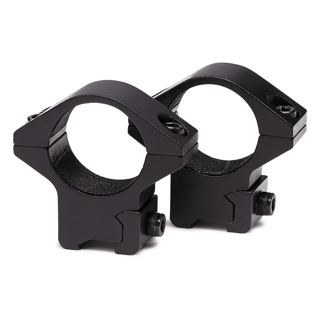 Características: Anillas metálicas, montaje corto, compatible con rieles Picatinny y Weaver