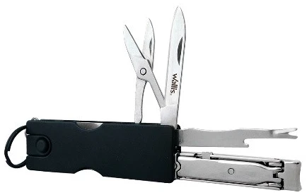 Multiherramienta 9 usos, compacta y esencial para aventura.