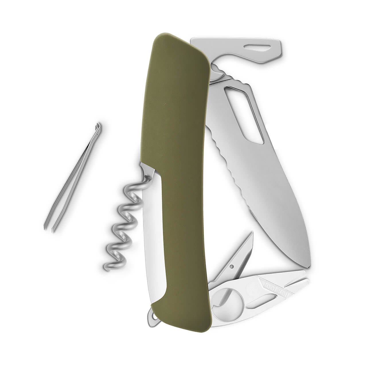 Navaja ALLMATT Single Hand SH03 TR-TT Wavy Edge, 12 funciones, olivo