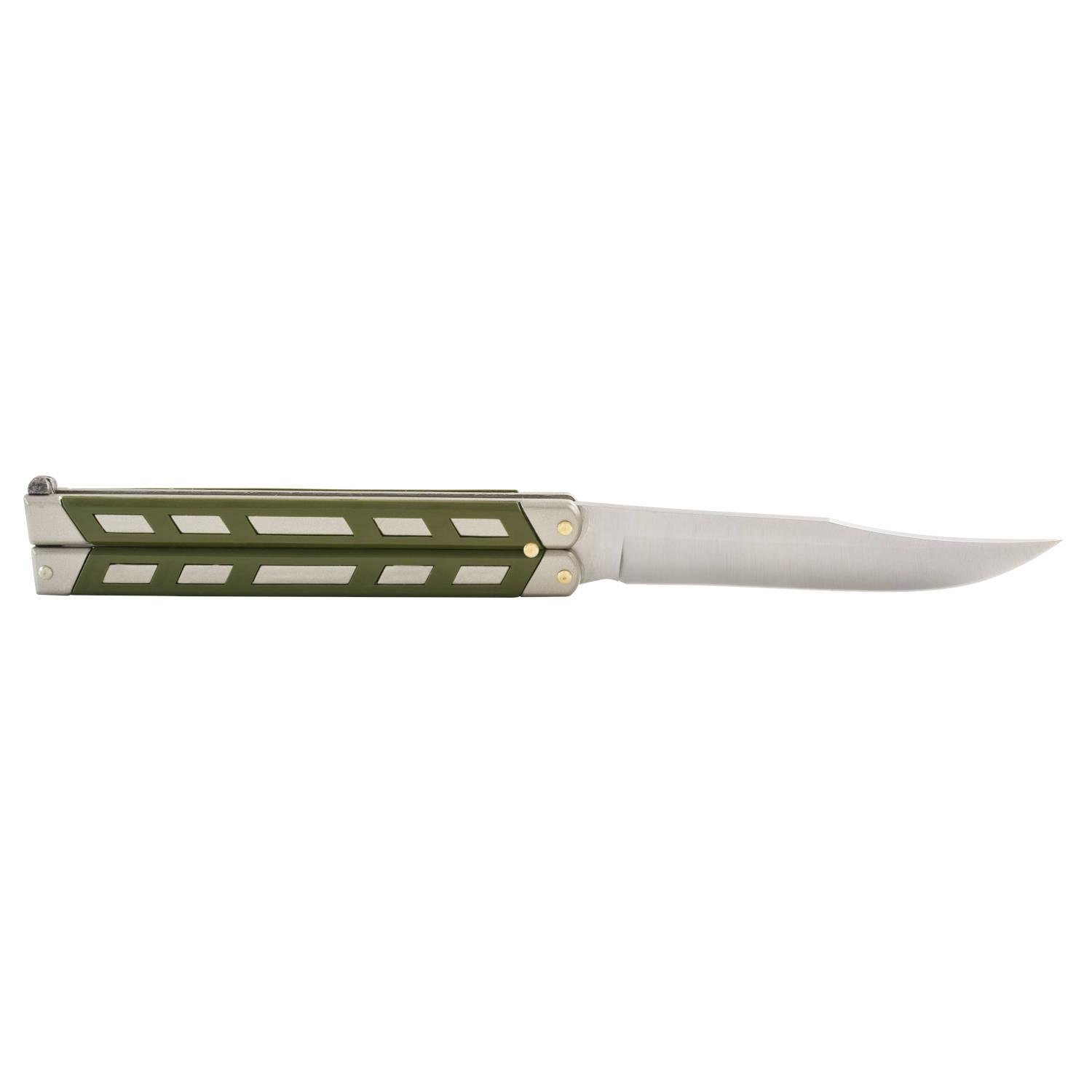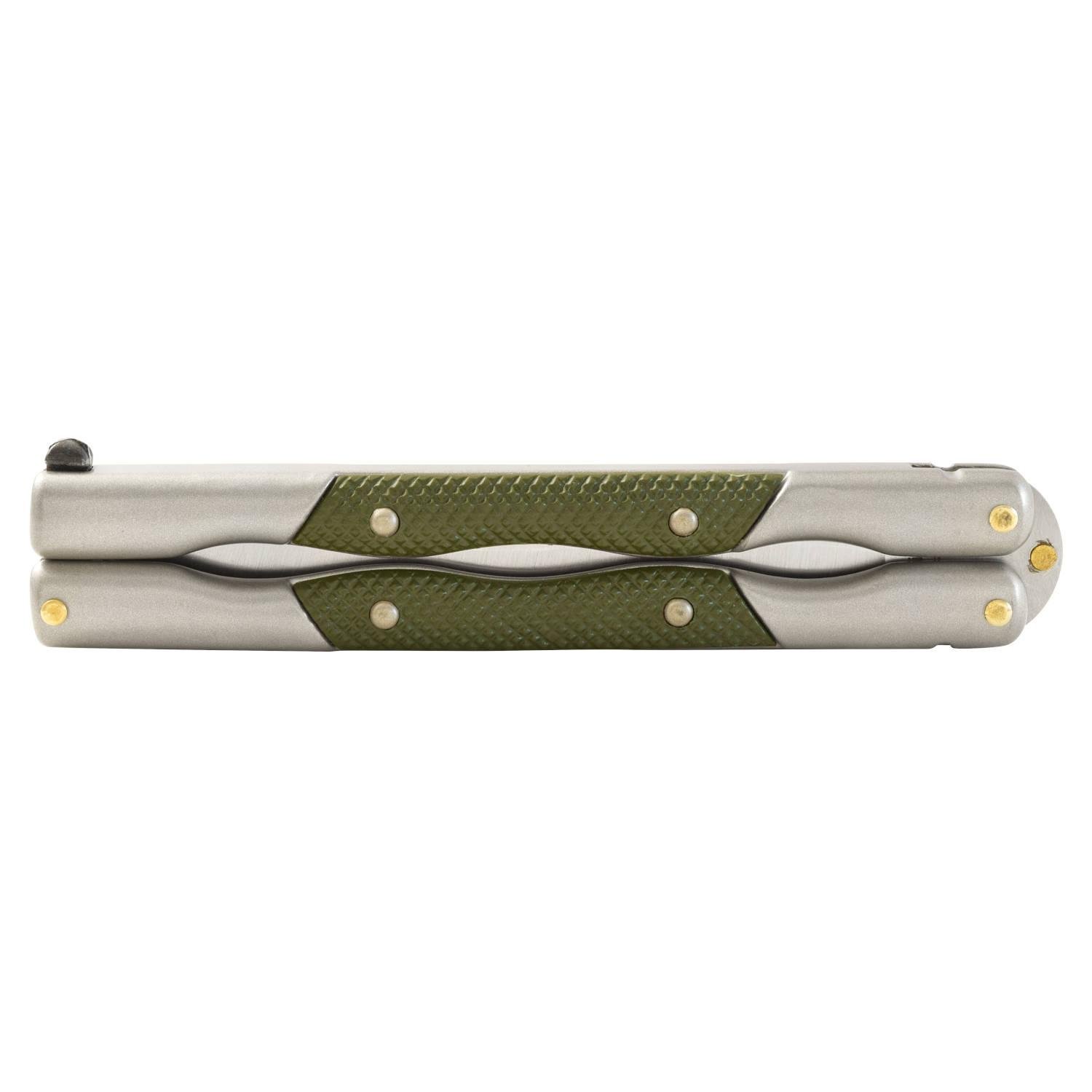 Navaja Ninhja, también conocida como mariposa, es una herramienta práctica y útil, el mango es de cromo duro verde y pintura epoxi. La navaja incluye un bloque manual «Push». Miguel Nieto® es una importante casa Española de producción de cuchillos tácticos, todos sus productos están hechos de forma artesanal con materiales naturales de la más alta calidad y resistencia.