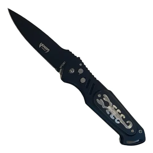 Bonita navaja militar automática Venom NF5381, completamente metálica, mide 22 cm abierta, 12cm cerrada, hoja de acero inoxidable, útil para campismo o colección.