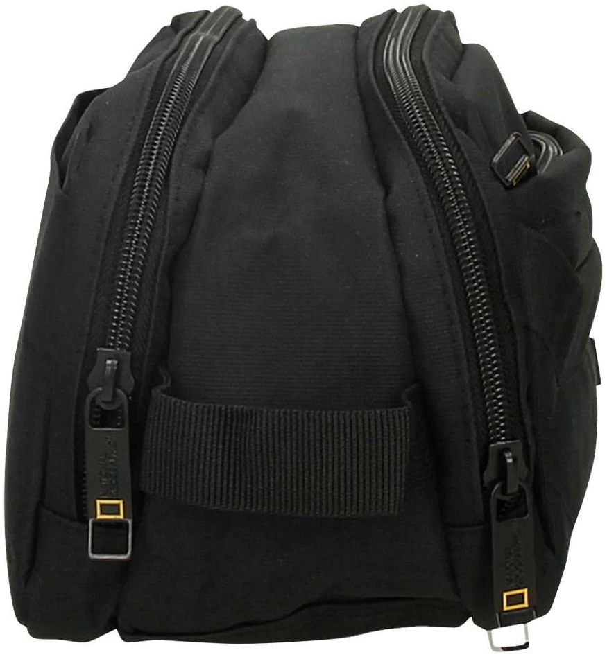2 Compartimentos principales con cierre (uno de ellos es resistente al agua), bolsa frontal con cierre, compartimento posterior con velcro, manija