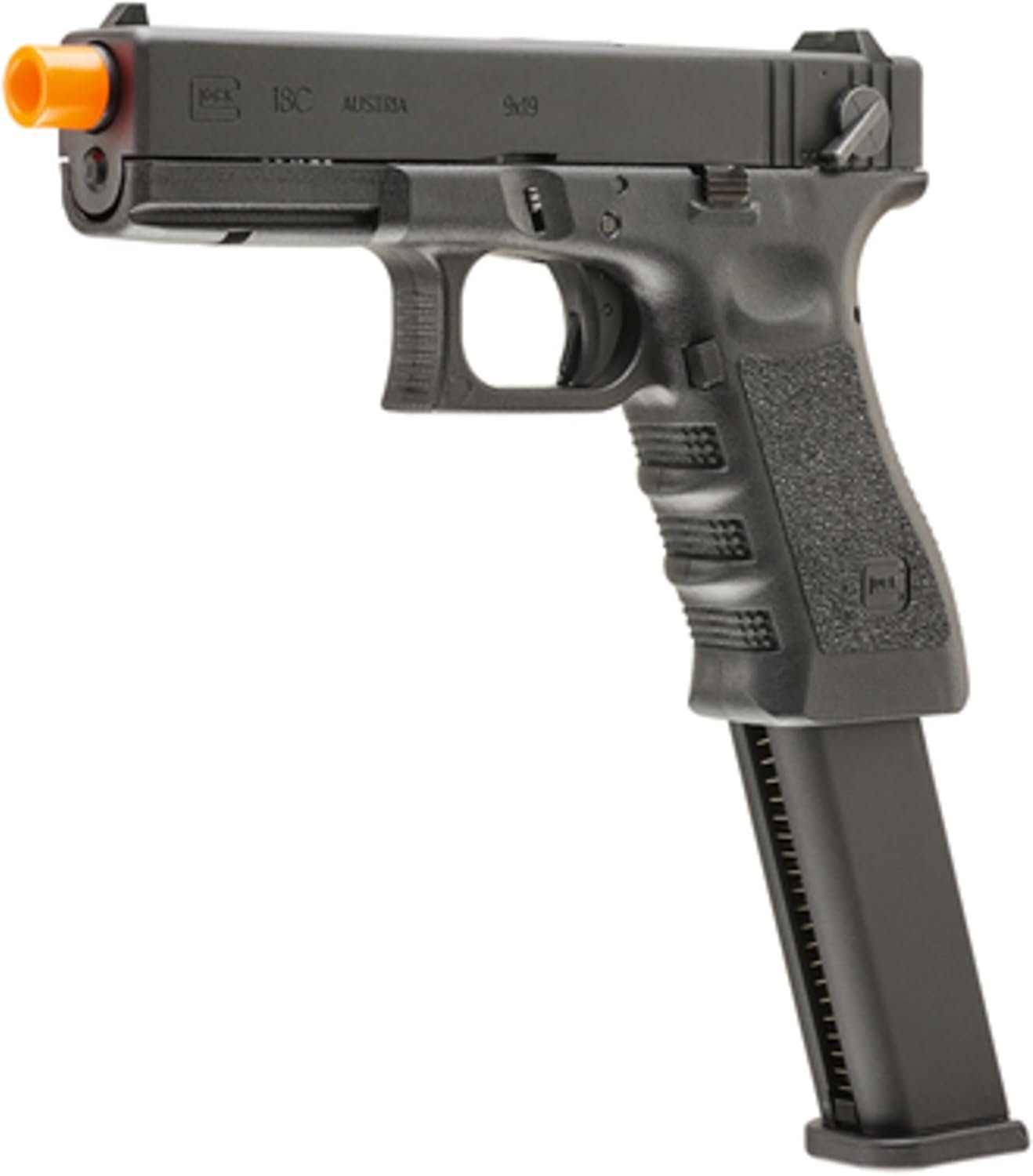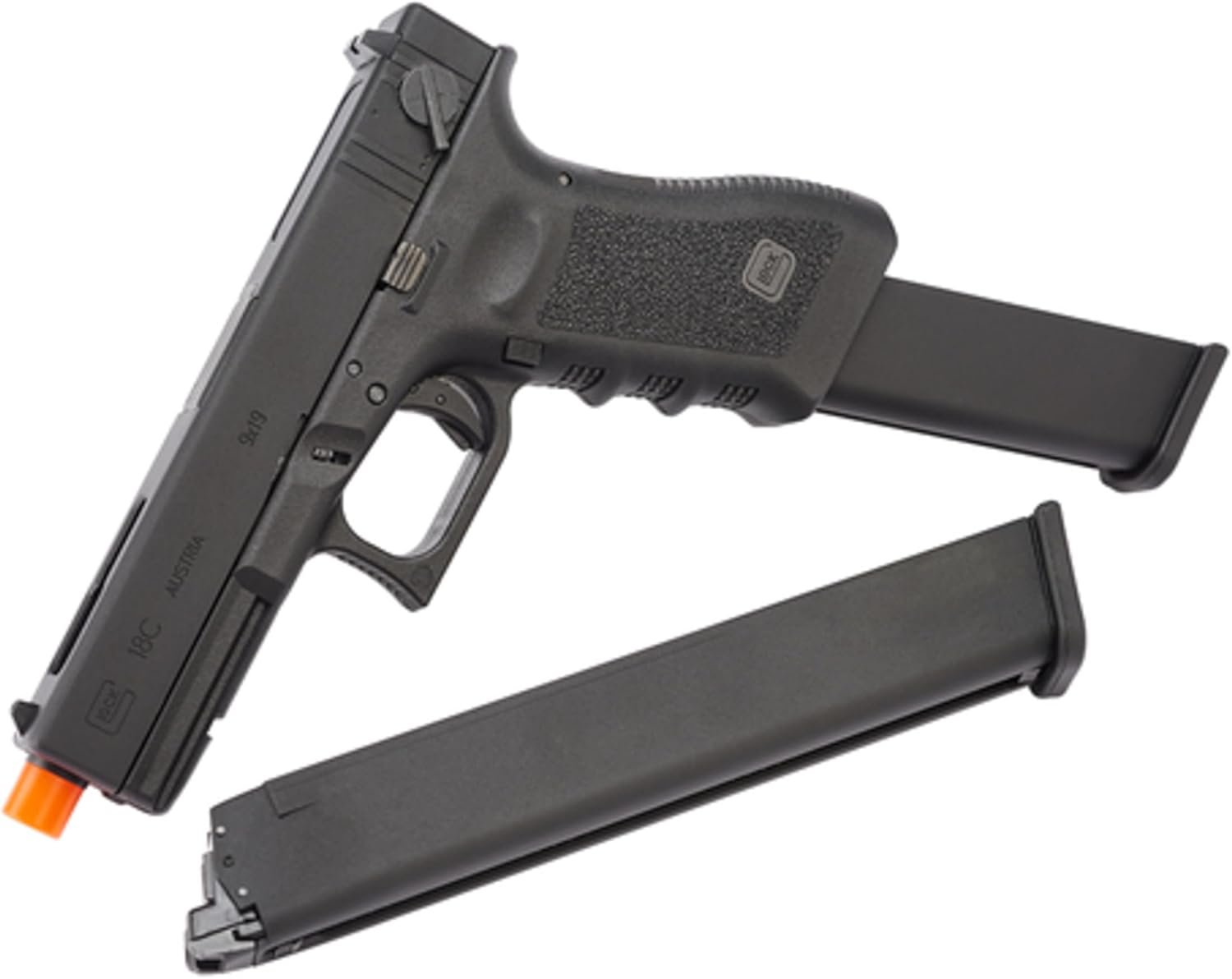 La GLOCK G18C es la legendaria versión full-auto del clásico diseño G17. Mientras que usted nunca puede ver la versión de arma de fuego, Umarex tiene la única licencia oficial réplica airsoft de este diseño raro. La G18C dispara en configuraciones semi y full auto y utiliza cargadores drop free que alojan tanto los BBs de 6mm como el gas verde. La GLOCK G18C utiliza características de estilo Gen 3 y lanza un chorro de balines de 20 gramos a 300 FPS.