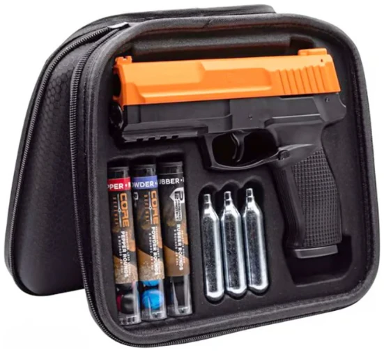 La P2P Secure 68P es una pistola de defensa personal no letal / defensa del hogar diseñada para ofrecer una respuesta rápida y efectiva sin los riesgos asociados a armas de fuego letales. Está impulsada por cartuchos de CO₂ de 12 g y dispara proyectiles calibre .68 a una velocidad aproximada de 350 fps (≈19 julios), lo que le da un poder disuasivo real con fuerza reducida para minimizar daños graves.