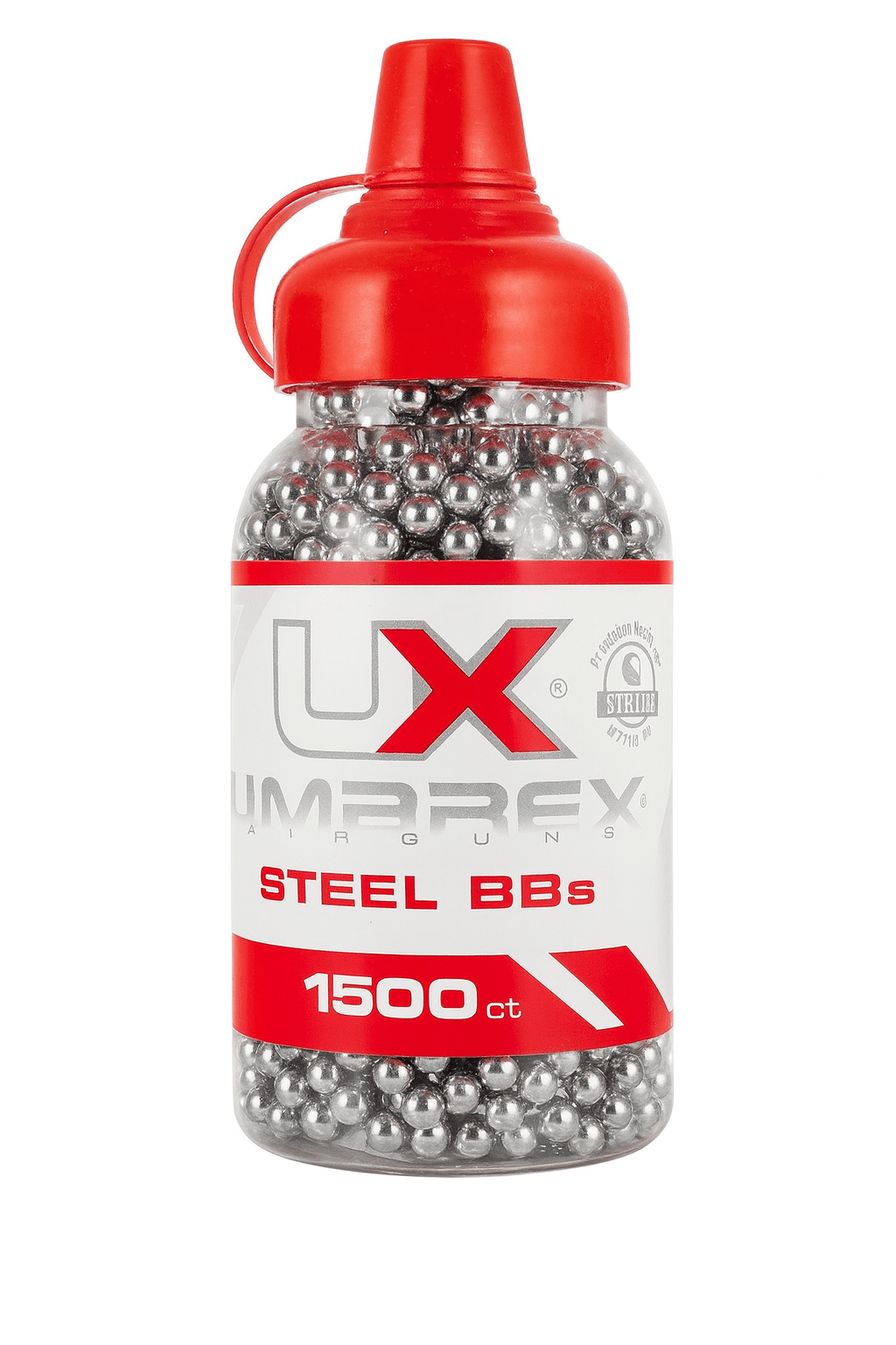 Munición acero Umarex calibre .177 BB, 1500 piezas en bote resistente práctico.