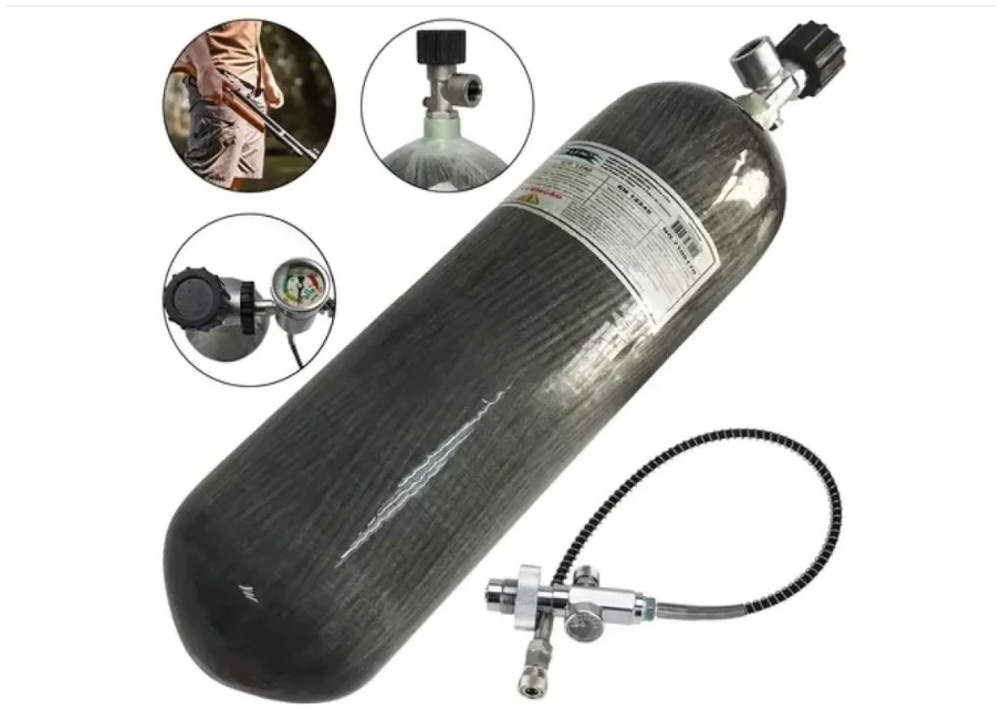 El tanque PCP de fibra de carbón 300 Bar / 3,000 ml es la solución ideal para la carga segura y eficiente de rifles de aire PCP. Fabricado en fibra de carbón de alta resistencia, combina ligereza, durabilidad y máxima seguridad, permitiendo un manejo cómodo sin sacrificar capacidad ni rendimiento.