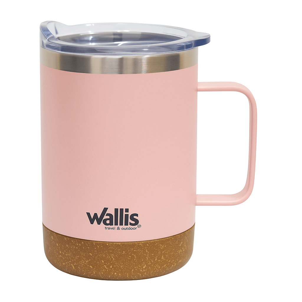 Taza Térmica Corcho Rosa, mantén tus bebidas a la temperatura ideal durante tu aventura.
